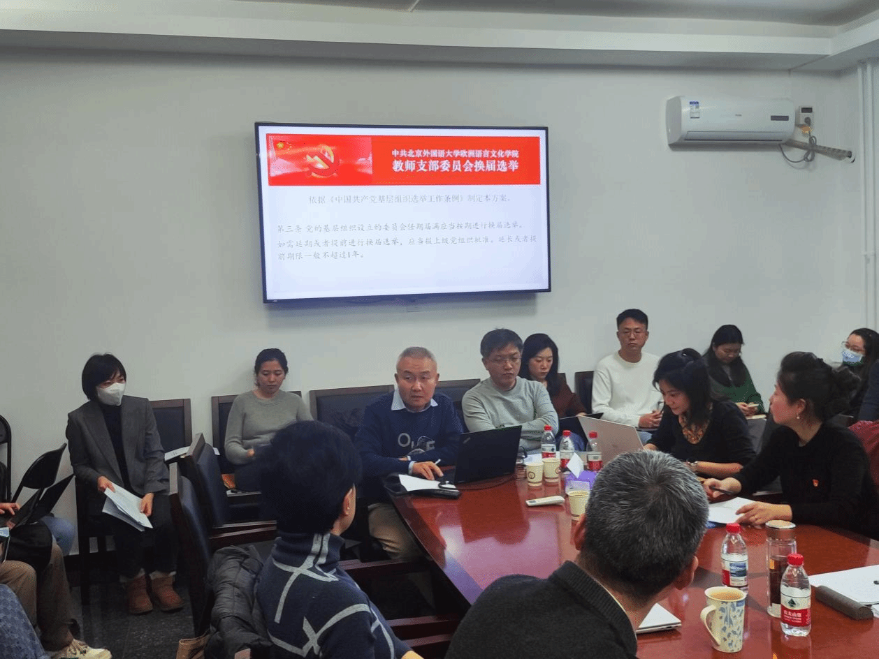 12月3日,欧语学院教师党支部在主楼307会议室召开全体会议,听取和审议李婧敬代表支委作的工作报告,进行支部委员换届选举。党支部书记李婧敬主持会议,学院党总支书记刘厚广、副书记董希骁、副院长林温霜及支部党员共40人参加会议。
