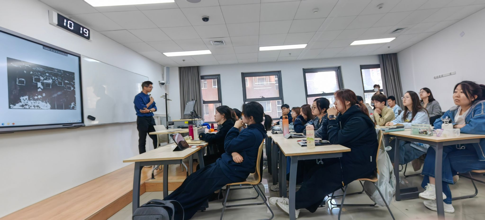 塞尔维亚语教研室主任彭裕超用中塞双语作为教学语言,与同学们一起研读中共中央总书记、国家主席习近平在访问塞尔维亚期间发表的重要讲话和专题文章,带领同学们用塞尔维亚语朗读核心段落。他回顾了中央电视台多视角的新闻纪实和专题报道,分享了自己于2009年往中国驻南联盟大使馆轰炸废墟时拍摄的照片。他深情介绍了三位烈士的经历,讲述自己在贝尔格莱德参观中国驻南联盟使馆遗迹的感受与触动,深切感受到两国人民由“血与火”铸就的深厚情谊。